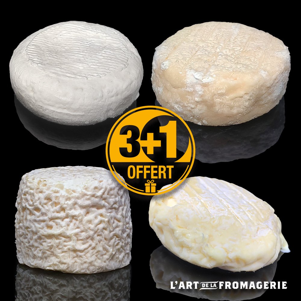 Offre : 3 achetés + 1 gratuit parmi nos fromages lactiques à 3,95 euros pièce. Photo non contractuelle. Contient (selon disponibilité produit) : 1 Marius fermier, 1 Saint Marcellin fermier IGP, 1 Crottin de chèvre fermier, 1 Chèvre frais fermier.