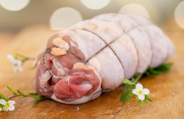 Cuisse de poulet désossée farci avec farce porc et volaille.