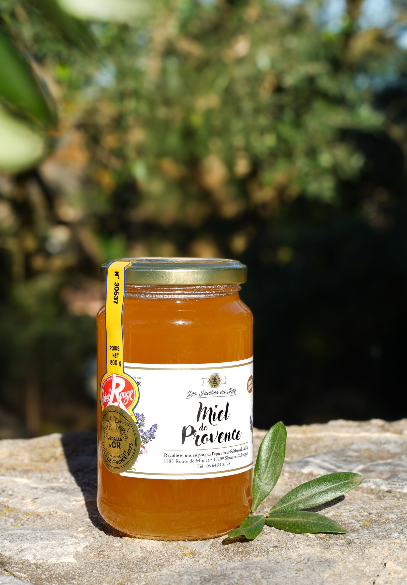 Miel typé fleurs de provence, peu être différent selon les lots, intensité moyenne Label & Distinctions : IGP / LABEL ROUGE Médaille d’or