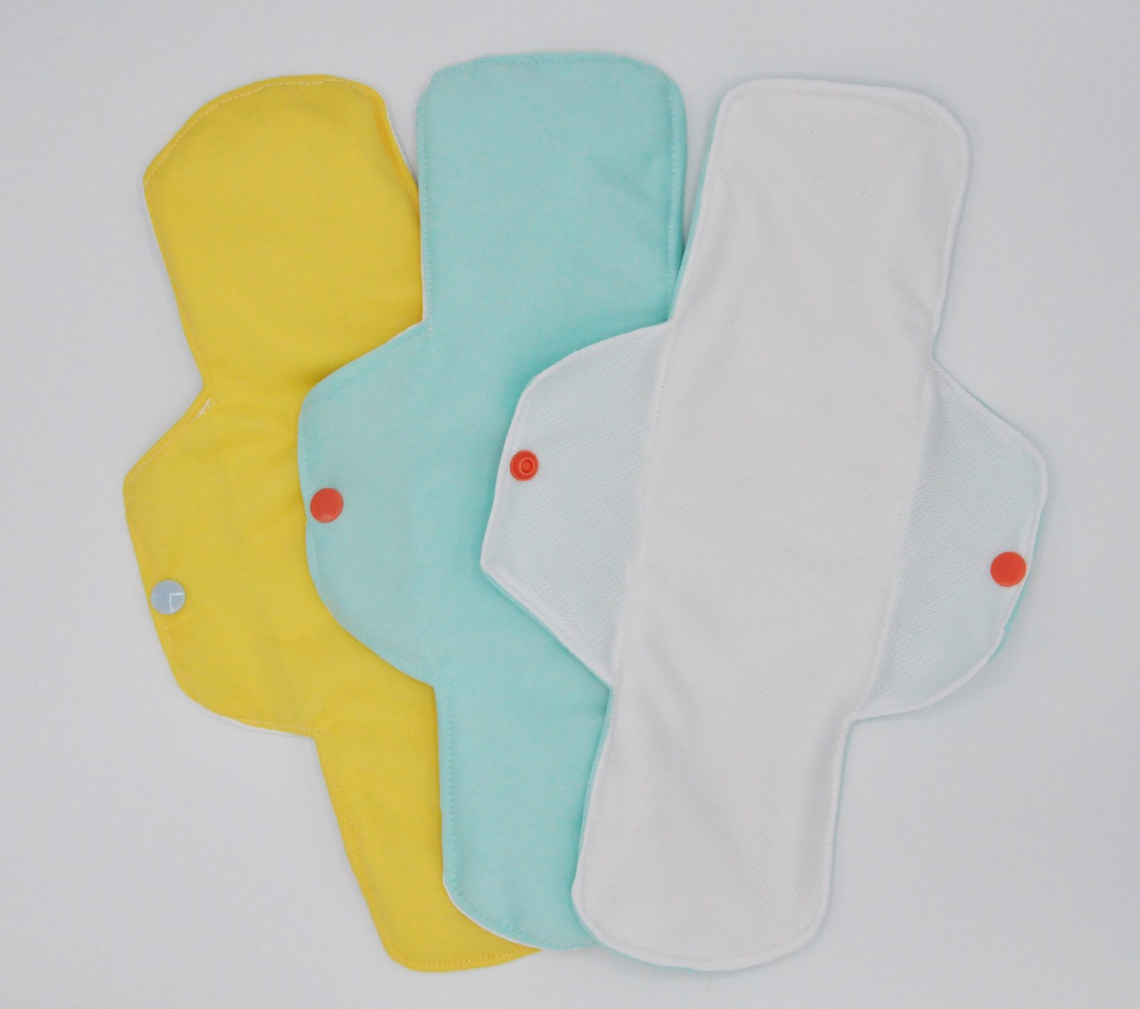 serviette hygiénique lavable en PUL, bambou et tissu absorbant Oekotex – fermeture par pression – 5 coloris disponible – 2 épaisseurs de bambou – grande longueur
