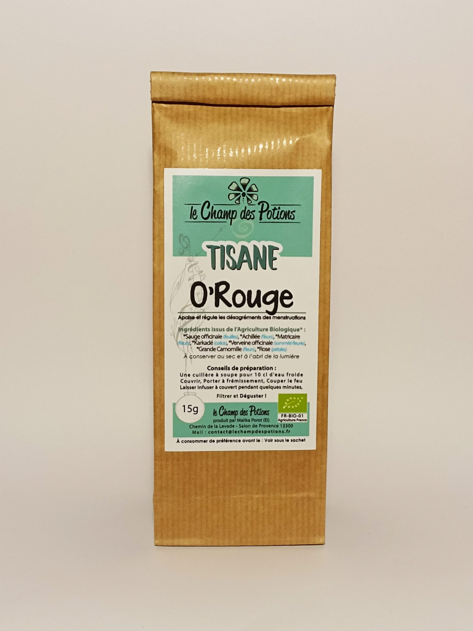 composition : Verveine officinale, Sauge officinale, Achillée, Matricaire, Camomille grande, Karkadé, Rose