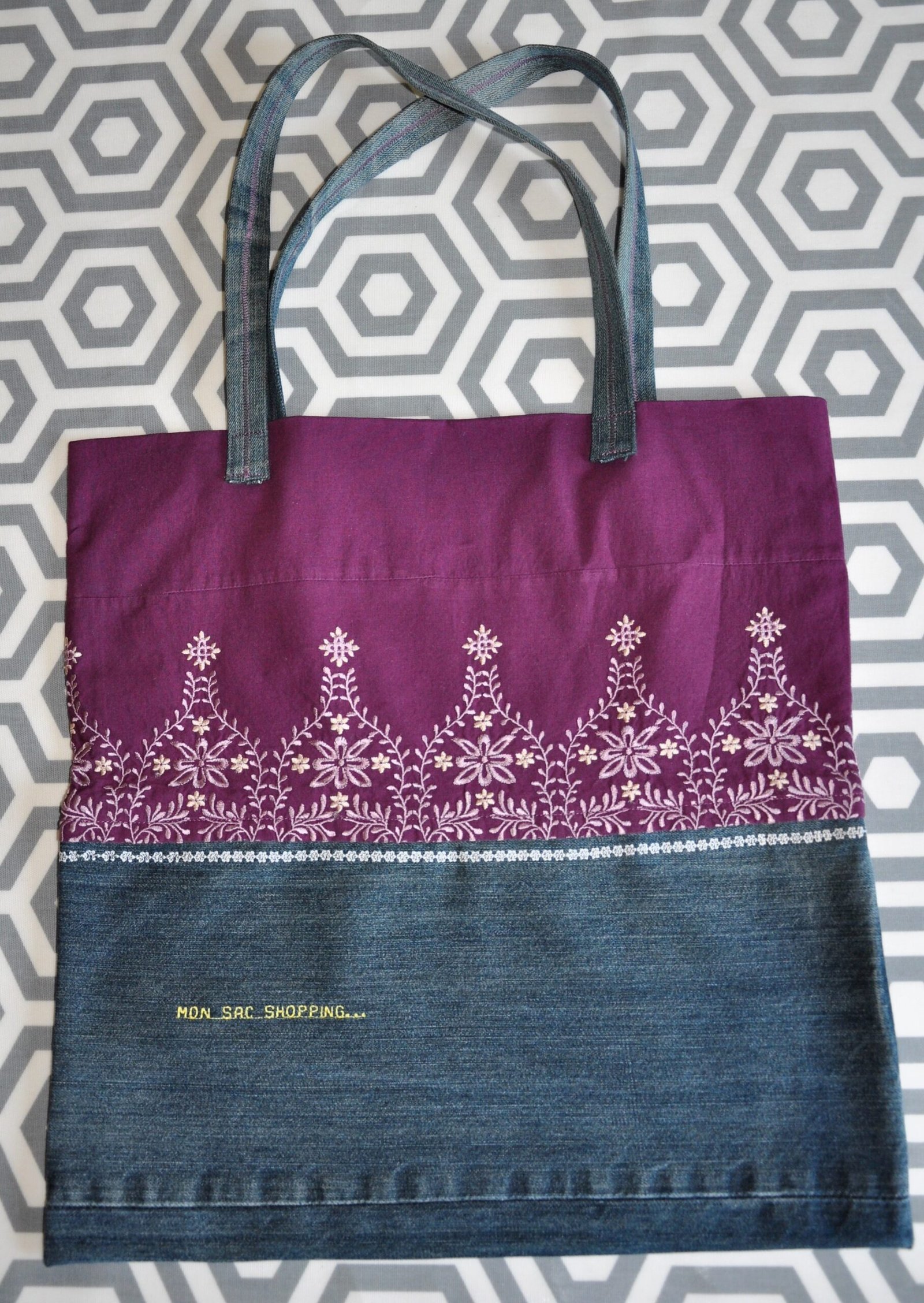 joli tote bag en tissu upcyclé et brodé – tous uniques – environ 40cmx40cm suivant la taille des tissus utilisés – à utiliser pour le shopping – très joli en cadeau aussi